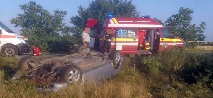 Mașină răsturnată pe o șosea din Timiș. Oameni răniți, printre care și o copilă de 13 ani