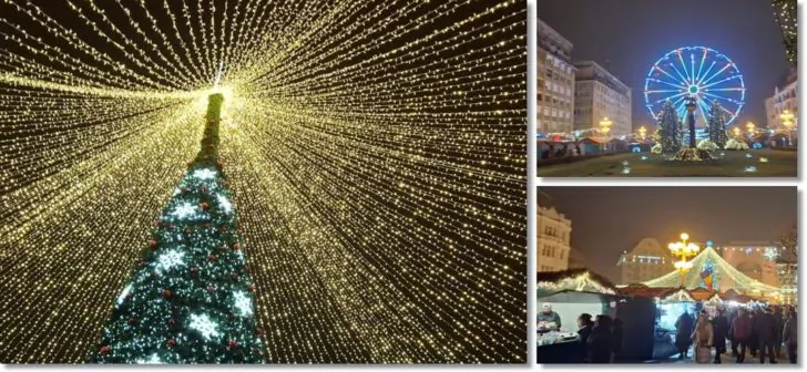 VIDEO. Mii de luminițe, brad carusel, trenuleț, roată panoramică și patinoar. S-a deschis Târgul de Crăciun de la Timișoara