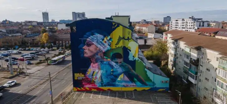 David Popovici, campion olimpic și mondial, portret uriaș la Timișoara. 400 mp de energie. FOTO