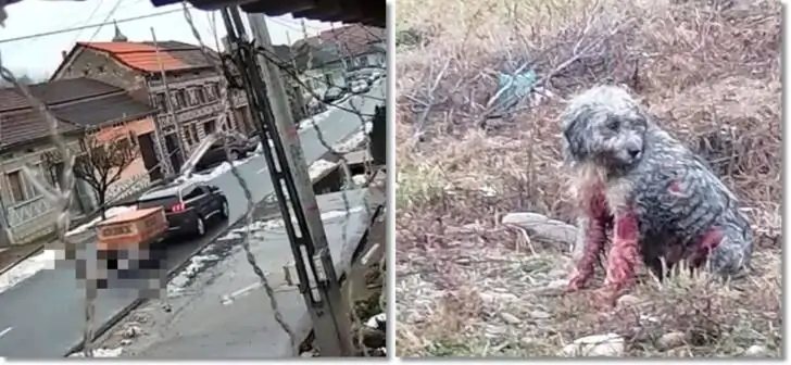 Cruzime de nedescris. Caine salvat, după ce a fost legat cu o lesă și târât după o mașină, pe stradă. VIDEO