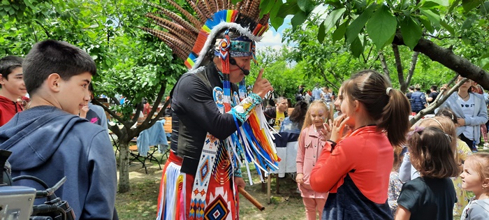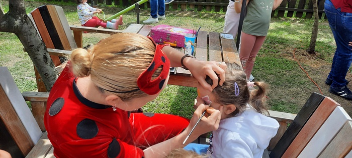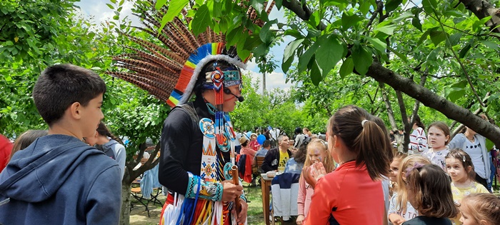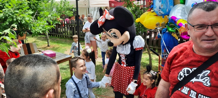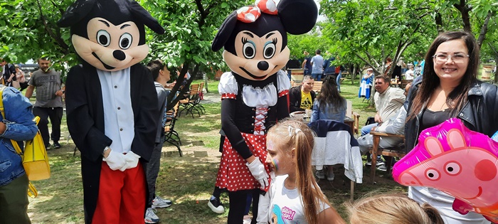 Gazdele nu i-au uitat nici pe cei mici. Copiii sunt asteptati cu baloane colorate, mascote, ateliere de creatie sau facepainting. La petrecerea din livada vin si Mickey sau Minnie Mouse, in pielea carora vor intra cei de la trupa Degetu Mic, dar si indianul care canta la fluier.