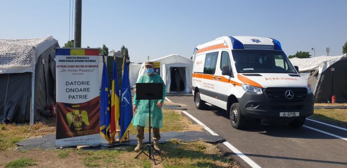 “Sistemul medical modular de izolare si tratament care functioneaza ca sectie externa de boli infectioase a Spitalului Clinic Militar de Urgenta dr. Victor Popescu din Timisoara si-a inceput activitatea medicala de tratare a pacientilor cu forme medii si usoara cu infectie de Sars CoV 2. In acest moment putem asigura asistenta medicala pentru un maxim de 50 de pacienti, iar capacitatea sectiei de ATI este de 4 paturi si este destinata pacientilor a caror stare se deterioreaza pe timpul internarii, pana la momentul transferului intr-o sectie de ATI dintr-un spital Covid 19.