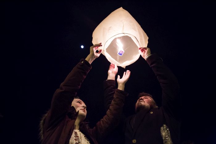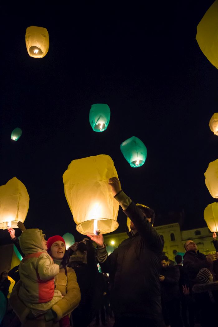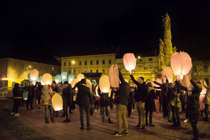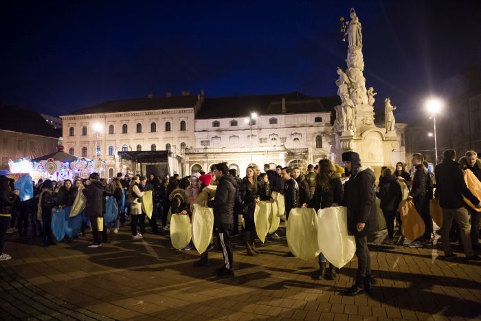TIMISOARA. Moment simbolic la Timisoara, marti seara, cand 100 de ampioane tricolore au fost lansate din Piata Libertatii.