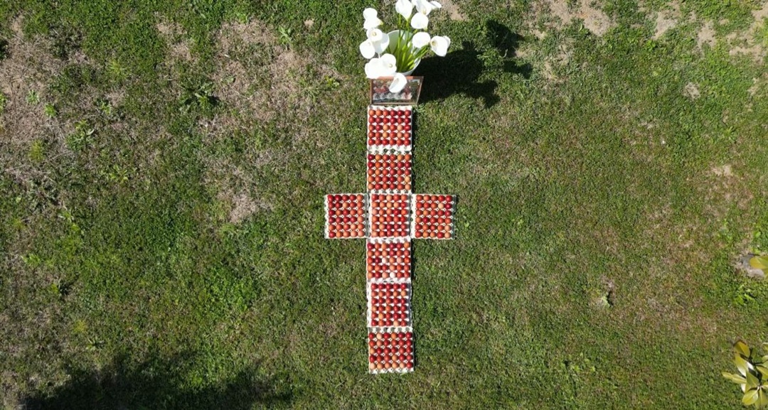 Potrivit obiceiului din partea locului, măicuțele așează apoi ouăle în formă de cruce, pentru sfințire. Lângă cruce ele pun o icoană și flori proaspete. Maicile sunt încredințate că asta le va aduce pace și bunăstare.