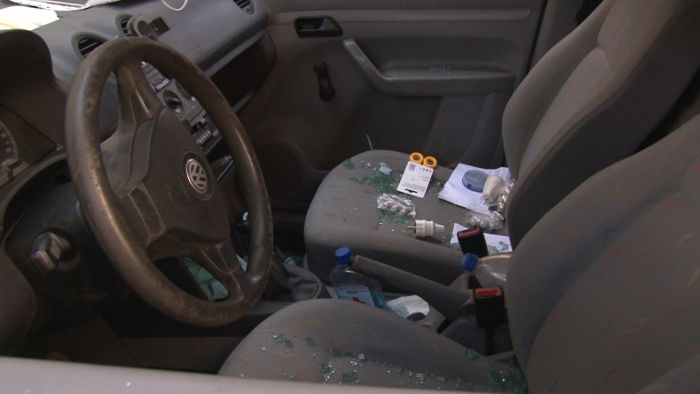 O femeie a sunat la 112 sa anunte ca masina ei este sparta si ca in vecinatate mai sunt si altele. Politistii au mers la fata locului si au constatat ca sunt 16 autoturisme care au cazut victime atacului in serie. Inca nu au fost depuse plangeri.
