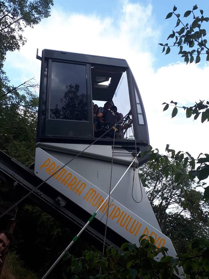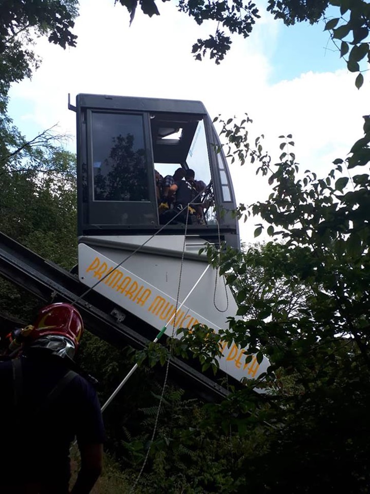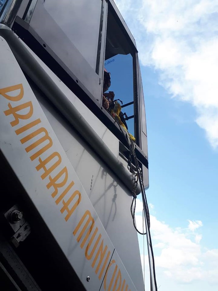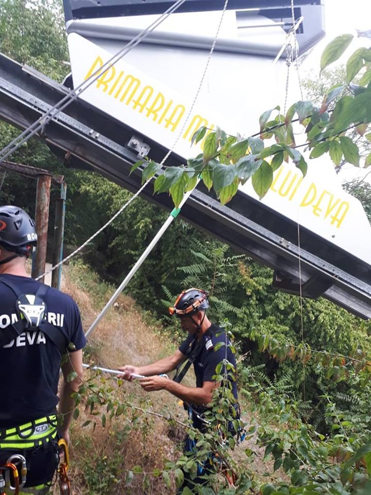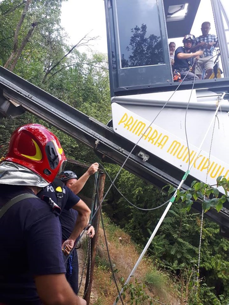 ‘Alpinistii pompieri deveni au intervenit pentru salvarea a 19 persoane blocate in telecabina de la Dealul Cetaţii. In telecabina aflata in coborare, in momentul producerii avariei, se aflau 11 adulti şi 8 copii, cu varste cuprinse intre 4 şi 12 ani. Pompierii alpinisti au realizat un dispozitiv specific de salvare de la inaltime, alcatuit dintr-un brat si un cos de extractie, cu ajutorul caruia au desfasurat operatiunea eficienta de aducere rapida la sol a oamenilor blocati’, transmit reprezentantii ISU Hunedoara.