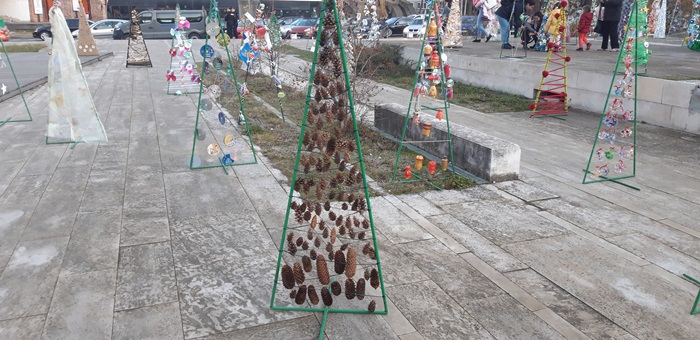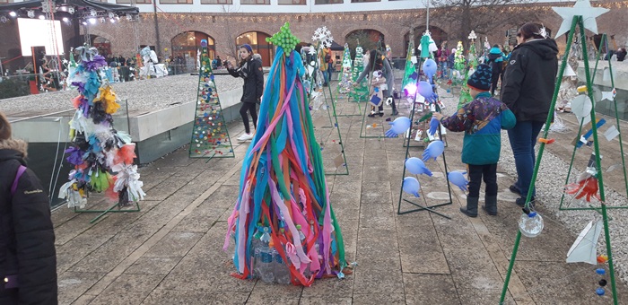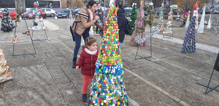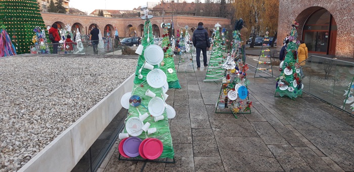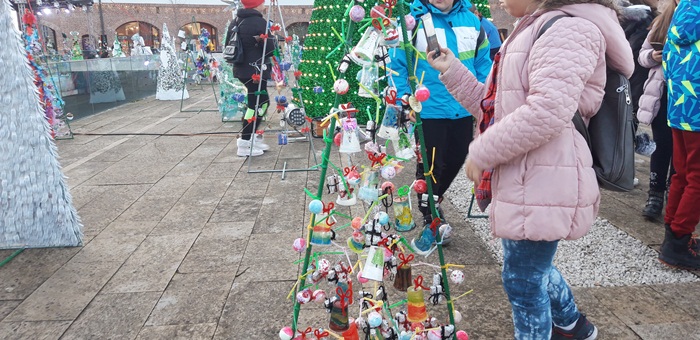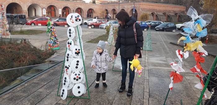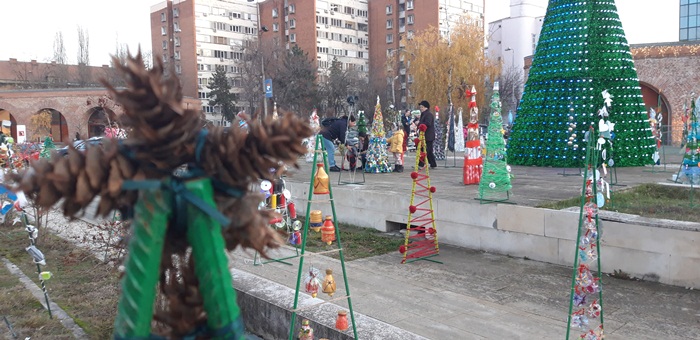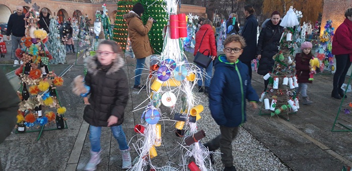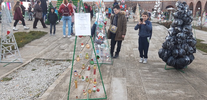 Micutii de la 9 scoli din Timisoara au aratat ca au imaginatie si au creat 250 de brazi din diverse materiale reciclabile. Brazi din peturi, doze de aluminiu, dopuri sau ambalaje de plastic si hartie si-au facut cu totii loc in expozitia creata de micutii artisti.
