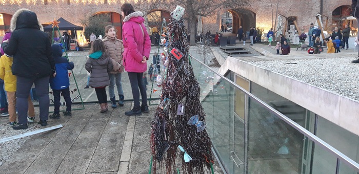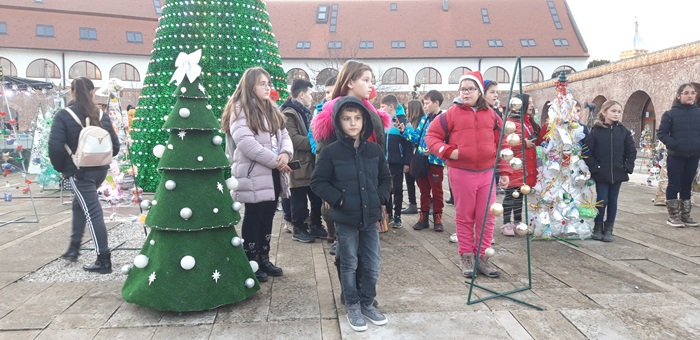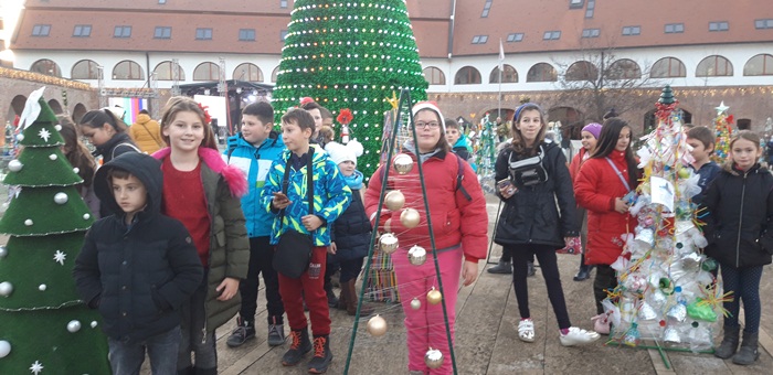 TIMISOARA. Traditionalul brad de Craciun a fost impodobit in sute de feluri de elevii mai multor scoli din Timisoara si expus in curtea Bastionului Theresia. In 250 de exemplare diferite.