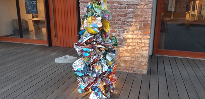 Altii au si pictat dozele sau sticlele din plastic, sau au folosit casete audio pentru a-si impodobi pomul.