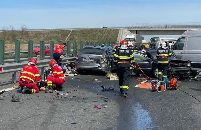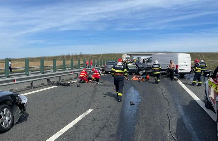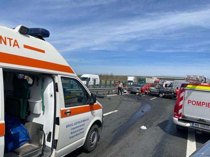 TIMISOARA. Impact devastator pe autostrada Timisoara – Deva, vineri dupa amiaza. 6 masini s-au izbit violent, iar din primele informatii, 3 oameni, intre care un copil, si-au pierdut viata. Alti 4 oameni sunt raniti. In total, 22 de oameni au fost implicati in accident.
