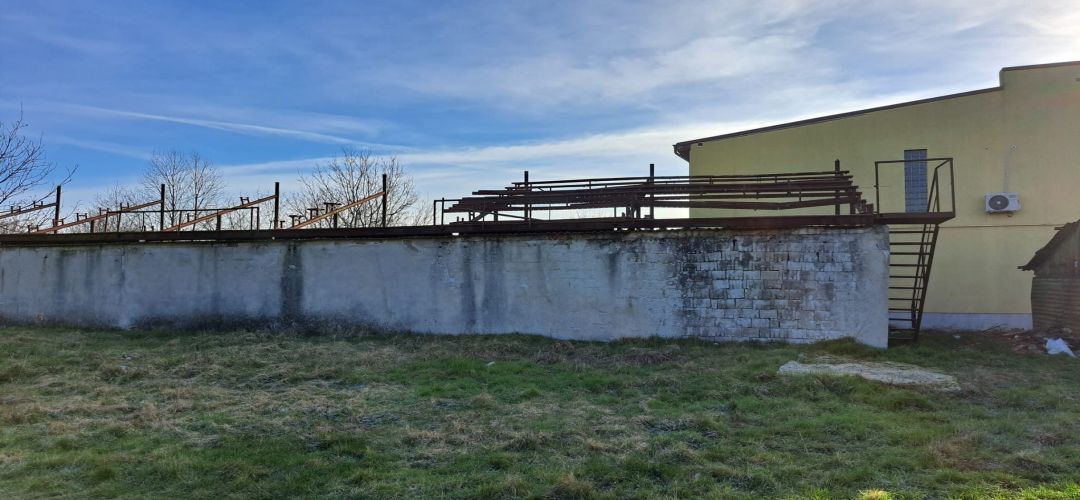 Terenul a fost deja curatat, fiind demolate vechea tribuna metalica si cateva cladiri care se aflau in zona.