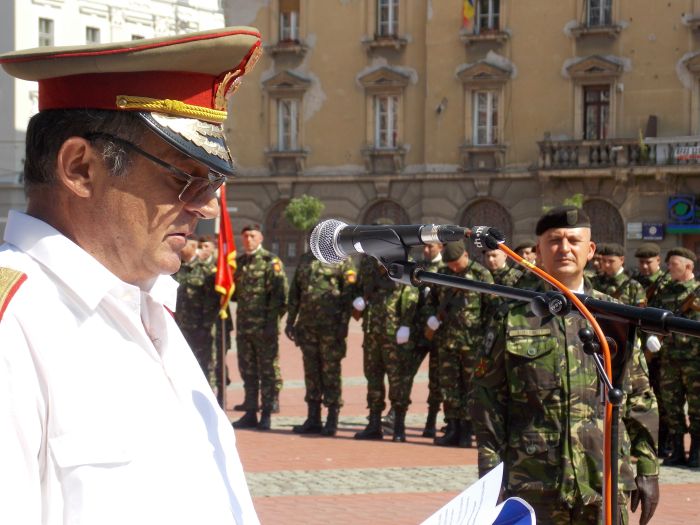 TIMISOARA. Momente emotionante, in Piata Libertatii din Timisoara, in onoara generalului de brigada Cristian Dinulica, de acum fost comandant al Brigazii 18 Cercetare – Supraveghere Banat.