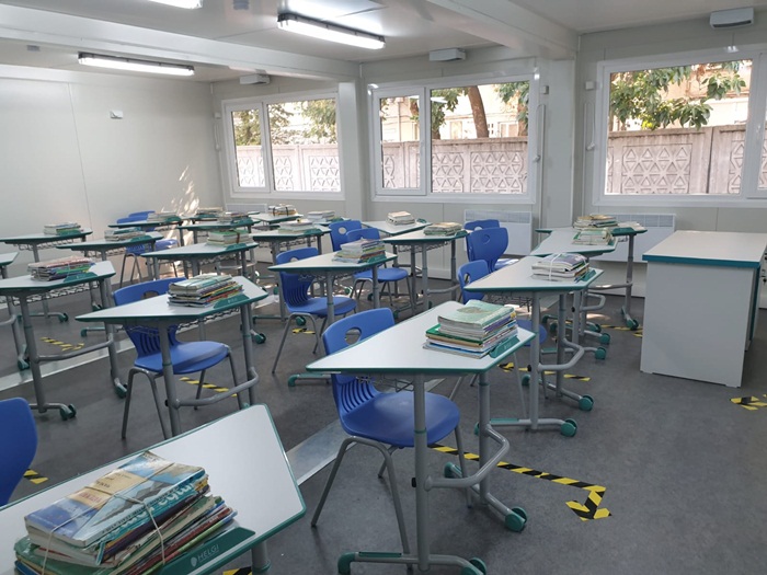 “Sunt 50 de clase montate în Timișoara, un rezultat care ar fi fost imposibil de atins într-un timp atât de scurt, în varianta clasică. Ne-am lovit de prejudecăți de tipul: “Învățați voi în containere, lucrați voi în containere!”, dar viața arată care sunt deciziile bune. Acestea sunt “containerele” de la școala generală 19 – 8 clase modulare, toalete, hol de acces și spațiu suficient pentru a realiza distanțarea“, arata reprezentantii Primariei Timisoara.