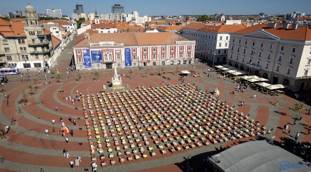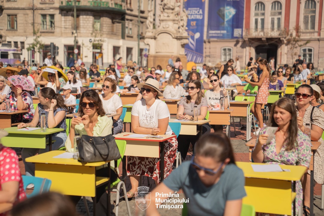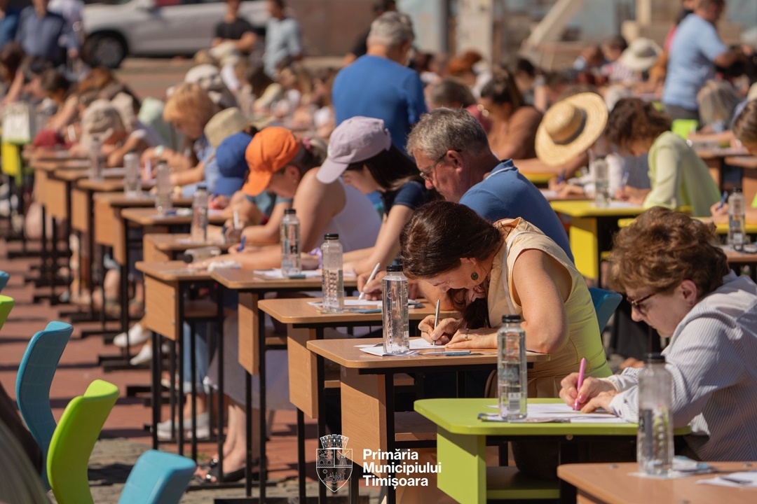 TIMIȘOARA. Au răspuns prezent peste 500 de timișoreni, s-au așezat la măsuțe și au scris după dictare în Piața Libertății, duminică.