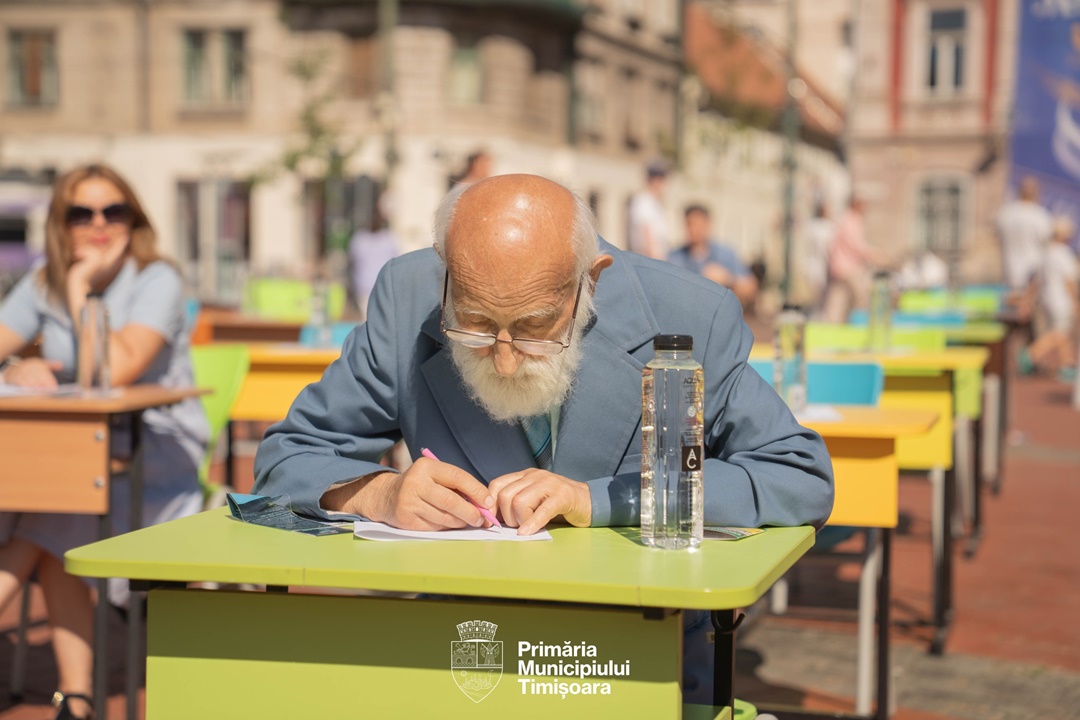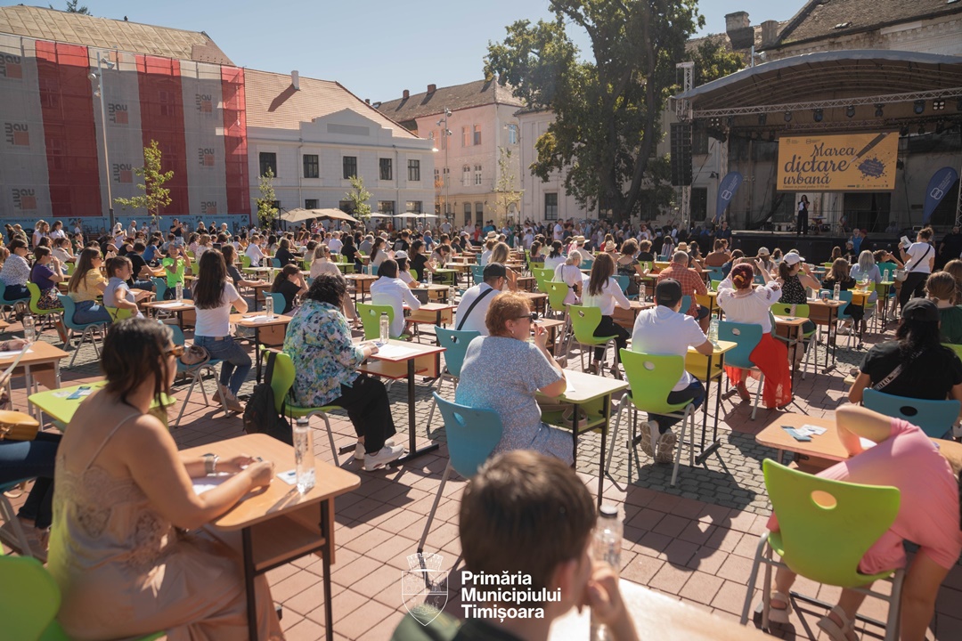 Iubitorii de cuvinte și-au testat cunoștințele de limba română la „Marea Dictare” – un concurs inedit, organizat în premieră la Timișoara, după modelul faimosului proiect parizian „La Grande Dictée des Champs Élysées”, al scriitorului și criticului literar Bernard Pivot.