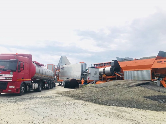 Primele cantitati de mixtura asfaltica iesite din utilaje au ajuns pe DN 7, unde au loc lucrari de reabilitare in aceste zile.