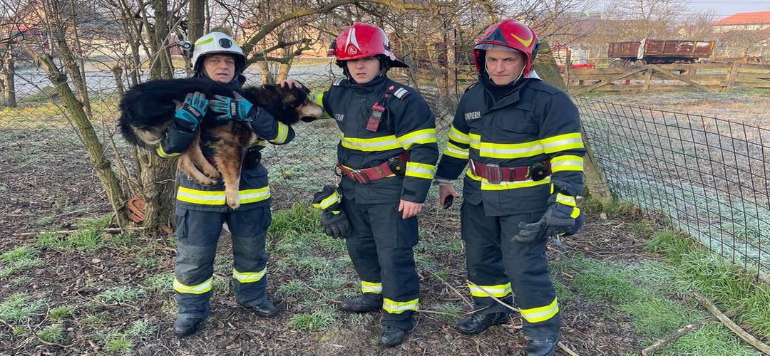 Atunci, tanarul a sunat la numarul de urgenta 112, iar pompierii din Timisoara au venit intr-un suflet sa salveze cainele.