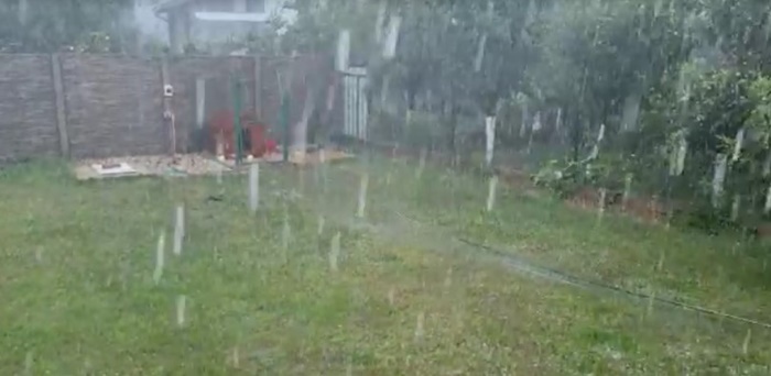 Pe langa aversele de ploaie, in doar cateva minute grindina a albit pe alocuri gradinile.