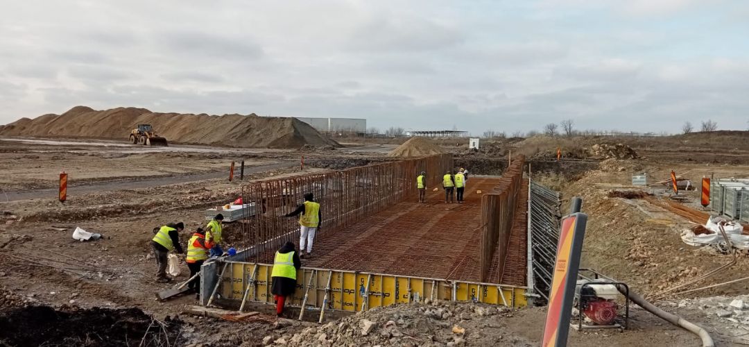 “Pe șantierul drumului de legătură a DN 69 Timișoara – Arad cu autostrada A1, in ciuda umidității ridicate din sezonul de iarnă, muncitorii au fost pe teren, lucrările au fost similare cu perioada anterioară, acestea fiind totuși condiționate de starea vremii: realizarea de umpluturi de pământ, strat de formă, strat de fundație din balast, stabilizare cu liant hidraulic, montare de prefabricate, relocarea rețea de electricitate LEA 220 kV etc. Echipele au insistat, în ultima perioada, pe amenajarea drumului tehnologic și amenajarea platformei pentru macarale în vederea montării, în 2025, a grinzilor pe pasajul peste A1. Stadiul lucrărilor este de aproape 40%“, transmit reprezentantii DRDP Timisoara.
