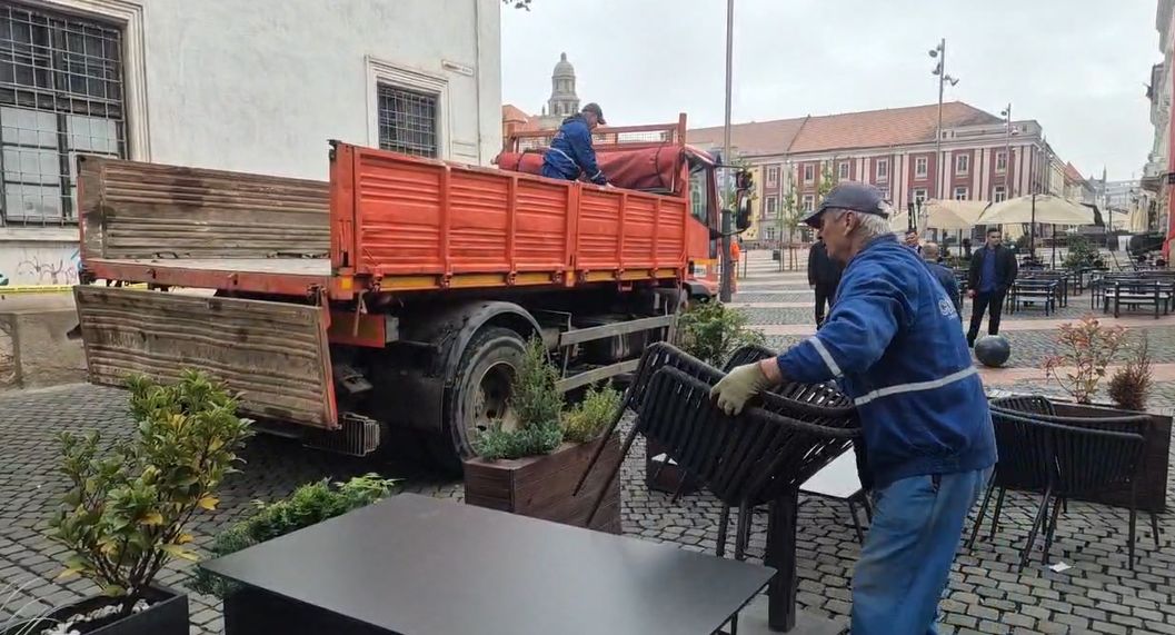 12 terase au fost desfiintate joi dimineata in centrul istoric al Timisoarei.
