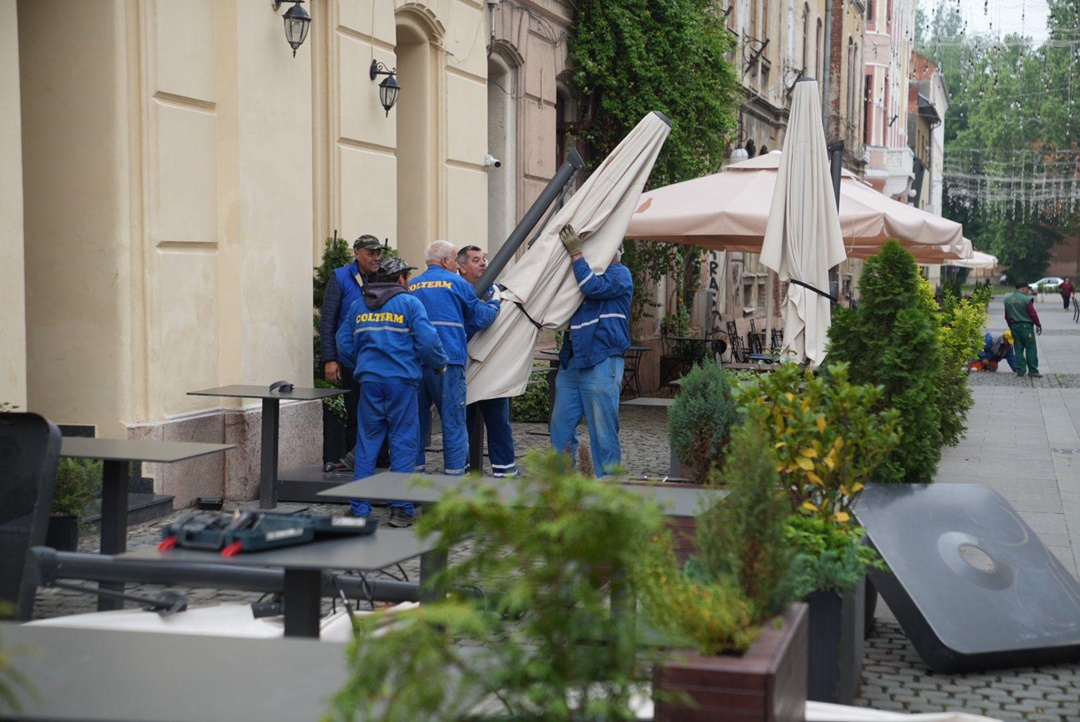 Aceștia au strâns mesele, scaunele si umbrelele de pe domeniul public.