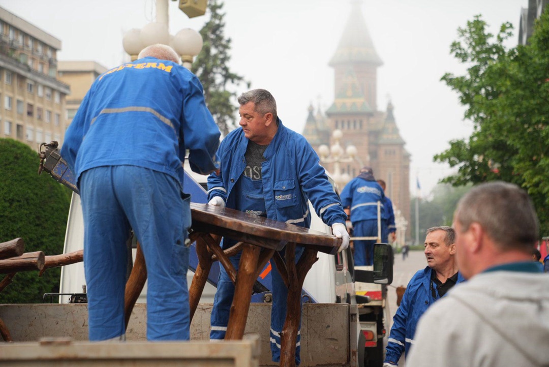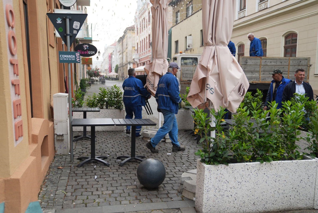 12 terase au fost desfiintate joi dimineata in centrul istoric al Timisoarei.