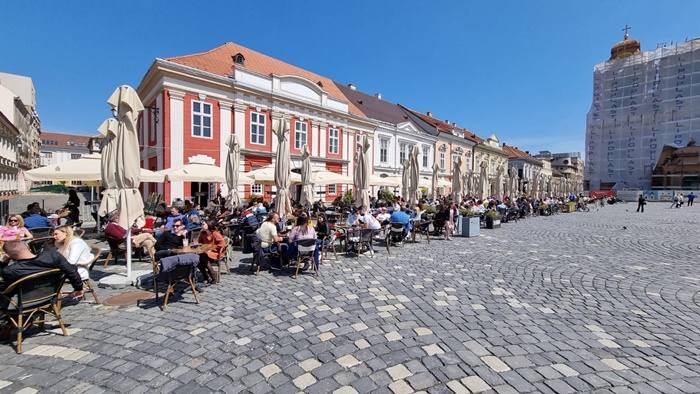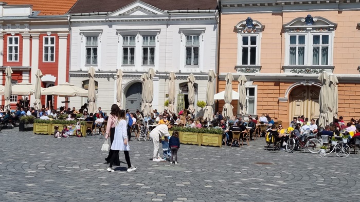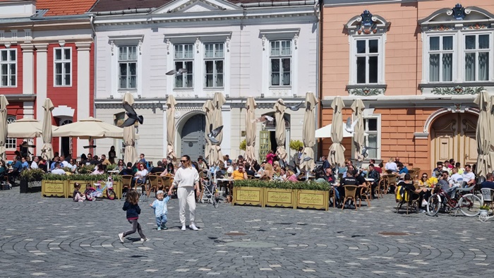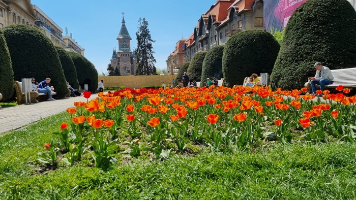 Vremea frumoasa de Florii si slujbele tinute la Catedrala Mitropolitana, dar si la alte biserici ortodoxe din oras au scos timisorenii din case, astfel ca zona centrala era intesata de oameni la orele pranzului, iar terasele pline.