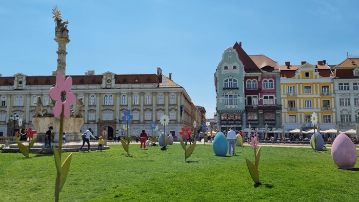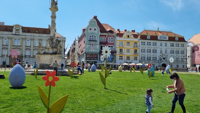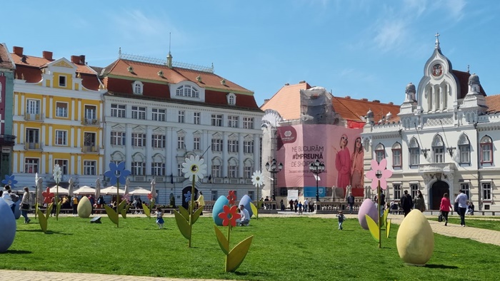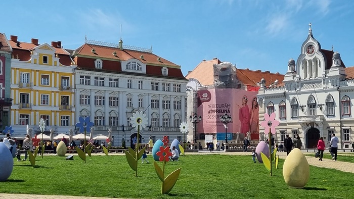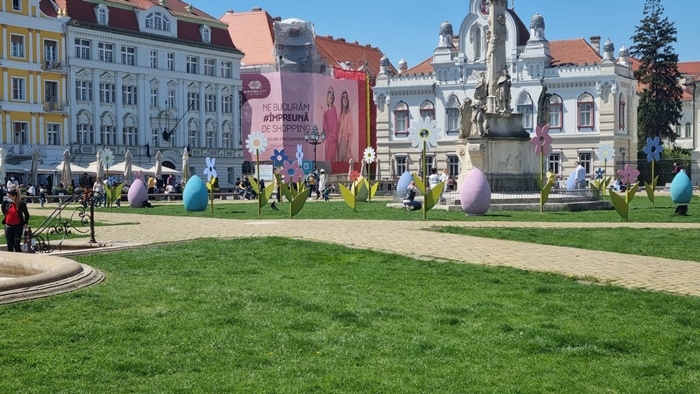 TIMISOARA. Nici in acest an, din pricina pandemiei, nu se organizeaza Targul de Pasti la Timisoara. Au fost insa montate in centru decorurile cumparate in 2019 de fosta administratie.