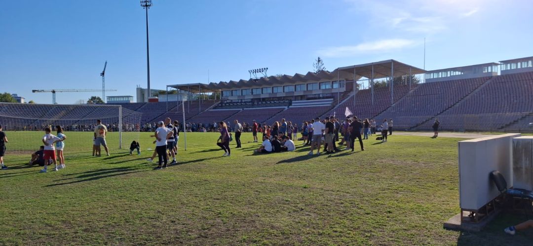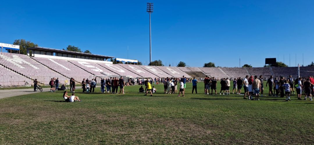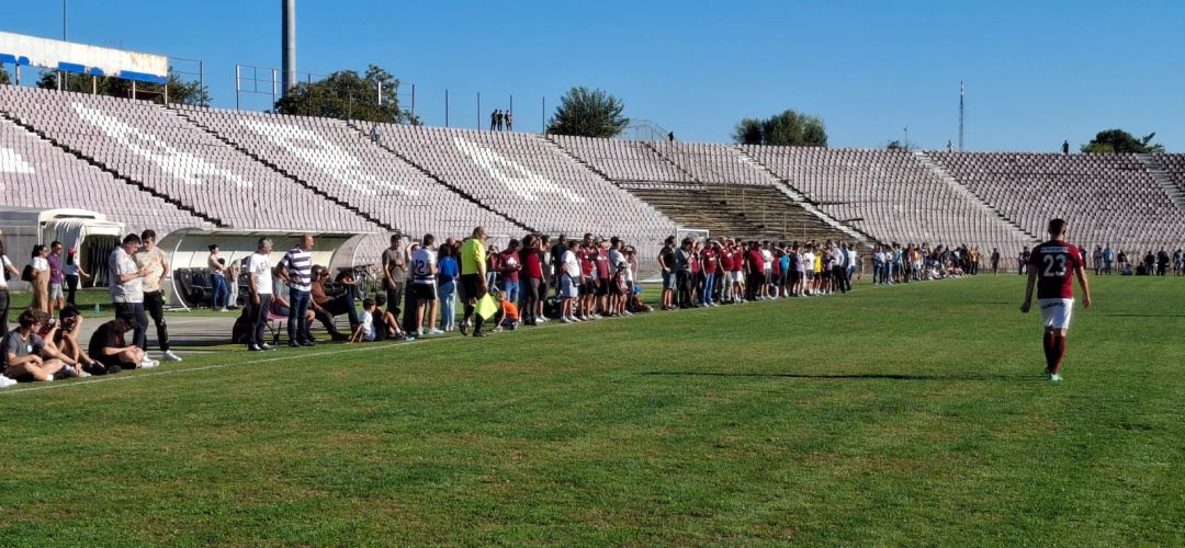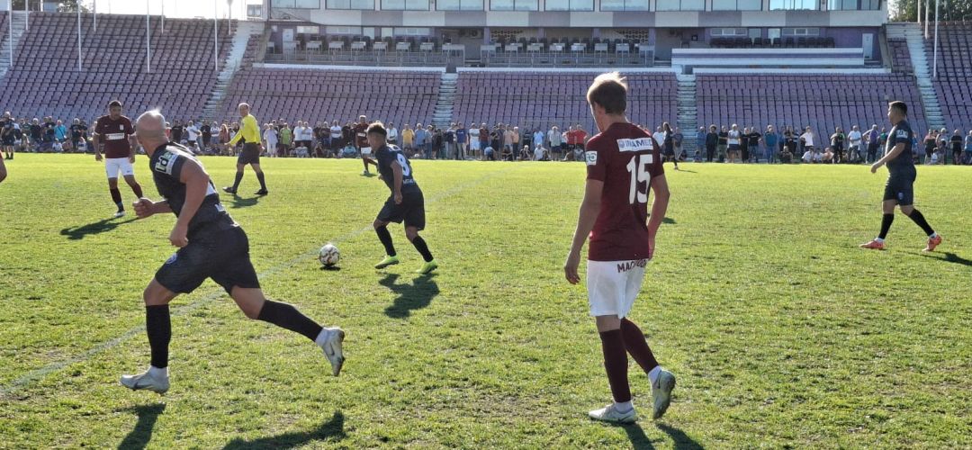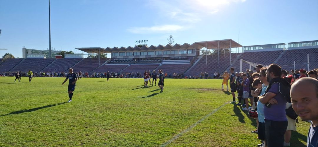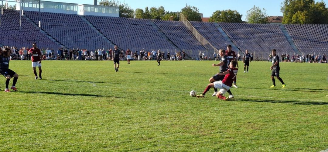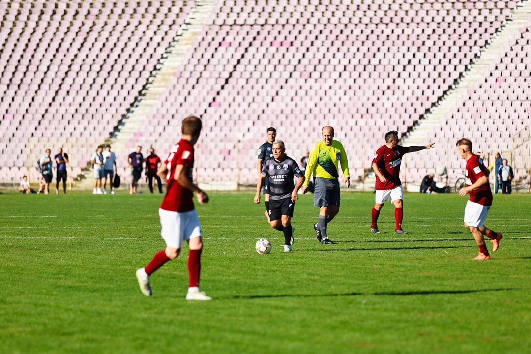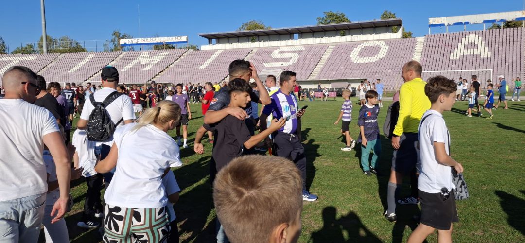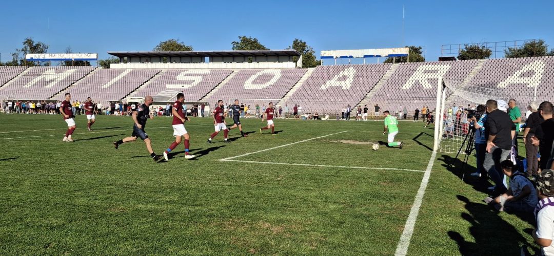 TIMISOARA. Cu tribunele inchise, dar cu sute de oameni pe pista de pe marginea terenului. Asa s-a disputat duelul amical dintre echipele de old boys ale Politehnicii Timisoara si Rapidului pe stadionul Dan Paltinisanu, vineri.