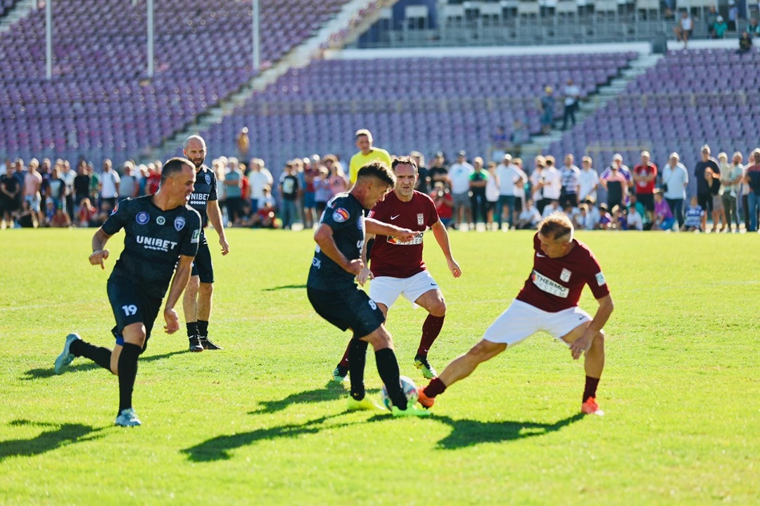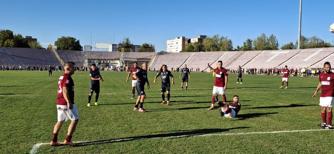 Unii albiti de vreme si cu cateva kilograme in plus, altii care arata de parca nu s-ar fi retras, desi au pus demult ghetele in cui, fotbalistii celor doua cluburi au aratat ca inca stapanesc mingea, pot face driblinguri spectaculoase si inca pot sa inscrie si goluri. Rapidul s-a impus cu scorul de 2-1, cu reusitele semnate de Costin Lazar si Marian Vlada, in timp ce pentru alb-violeti a punctat Iasmin Latovlevici.