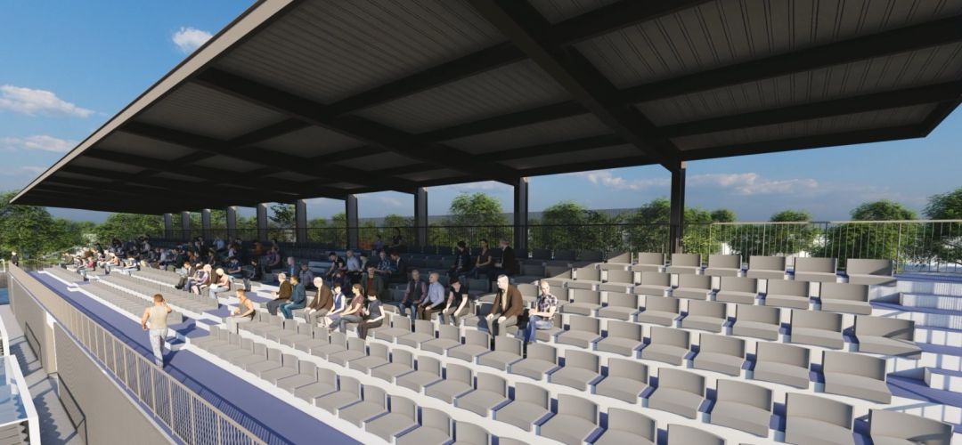 Antreprenorul a lucrat la amenajarea terenului de fotbal, unde a fost finalizat drenajul, dar a inceput si constructia cladirii si a trebunei cu 417 locuri. A fost deja turnata fundatia, iar conform planului pe perioada iernii se vor face lucrari la instalatii si la finisajele interioare.