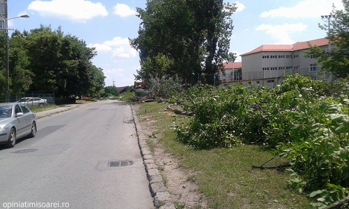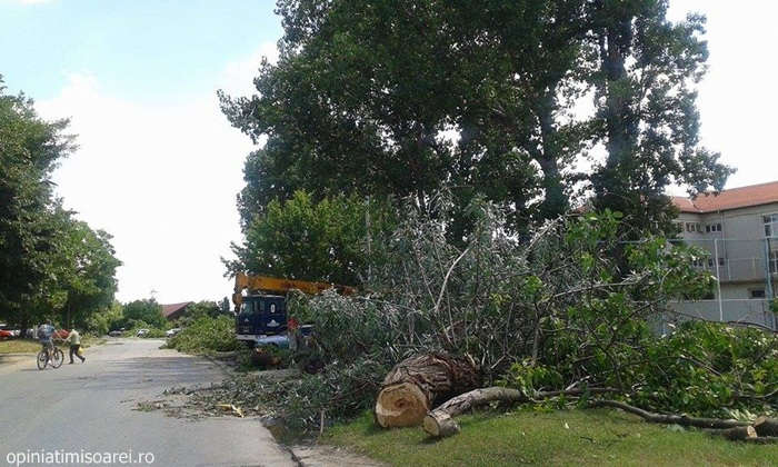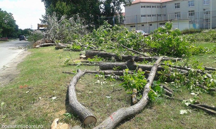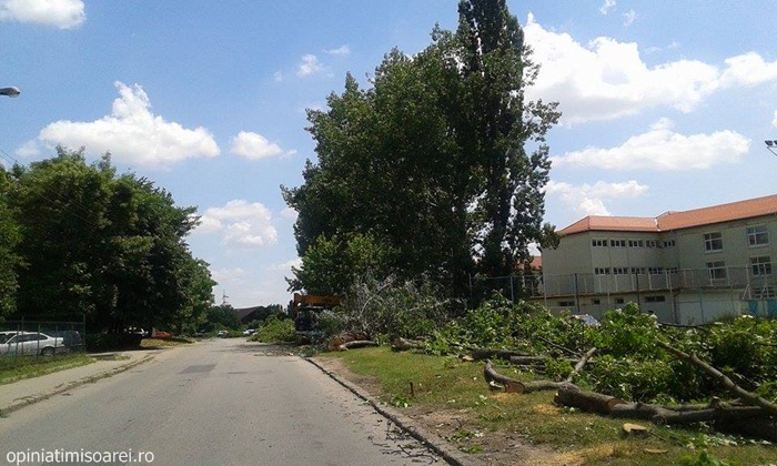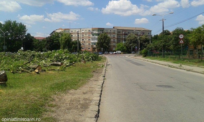 TIMISOARA. S-a deschis in sfarsit santierul pe strada Dr. Aurel Paunescu – Podeanu. Asa cum era de asteptat, muncitorii au inceput cu… taierea copacilor. Zeci de arbori au cazut deja sub drujbele acestora, insa autoritatile locale promit ca vor planta aproape 200 in locul lor.