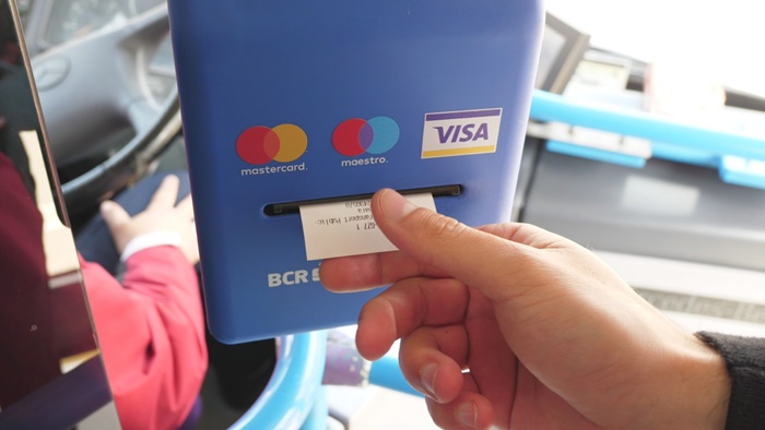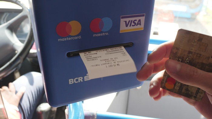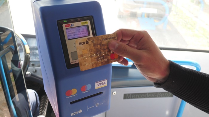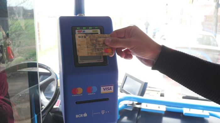TIMISOARA. De marti, 19 martie, timisorenii care circula cu mijloacele de transport in comun au parte de o noua varianta de plata a biletelor – cu cardul bancar. Au pornit primele POS-uri montate in cateva autobuze, urmand ca operatiunea de montare sa isi urmeze drumul, iar astfel de dispozitive sa gasim in cateva luni in toate mijloacele de transport din Timisoara.