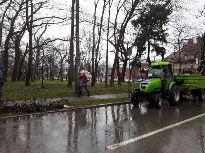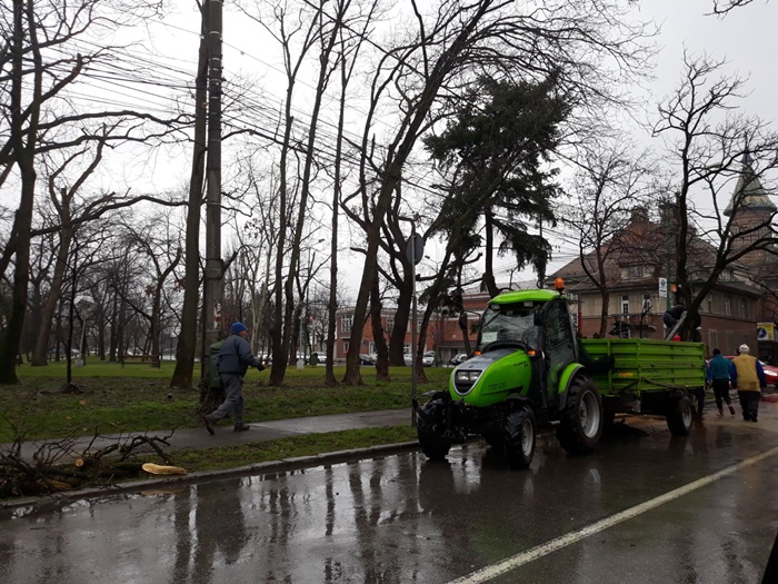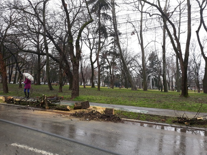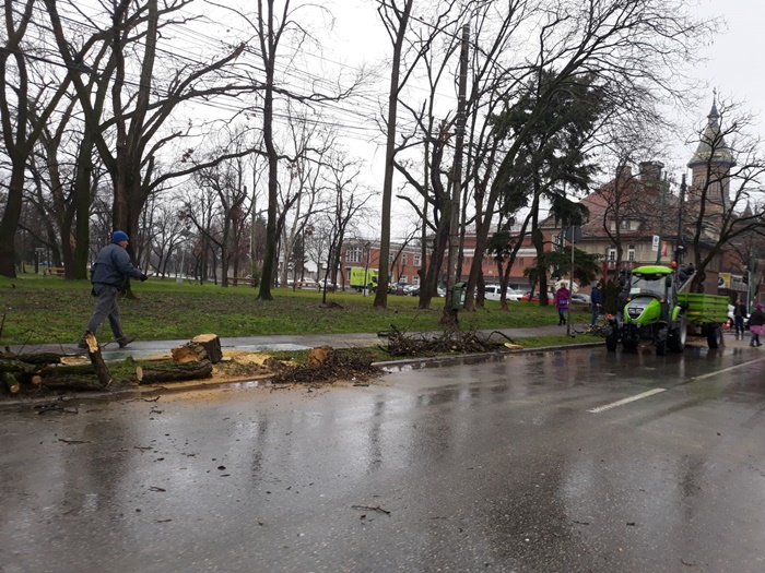 Astazi, muncitorii primariei au trecut la treaba si au inceput taierea primilor arbori. Bucati de trunchiuri s-au transformat pur si simplu in praf, cand s-au prabusit la pamant si s-au dezintegrat, semn ca unii erau complet putrezi pe dinauntru.