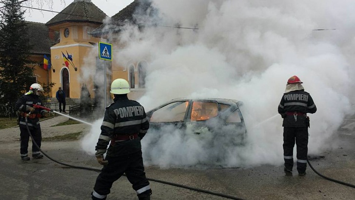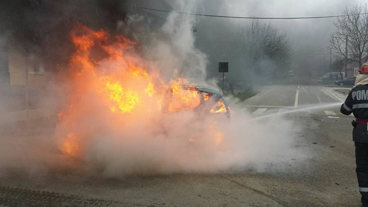 Autoturismul, un Mercedes, a fost cuprins de flacari in mers. Soferul a observat si a sarit imediat din masina. A incercat sa stinga incendiul cu un extinctor, insa in zadar. Speriat, omul a sunat la numarul de urgenta 112 sa ceara ajutorul pompierilor.