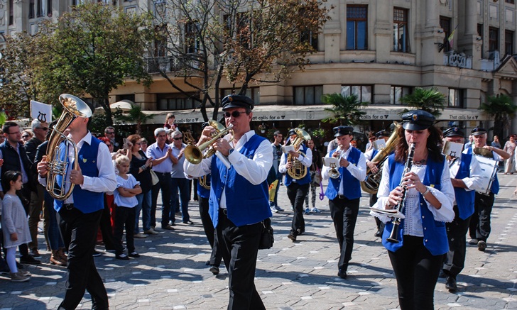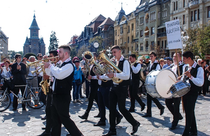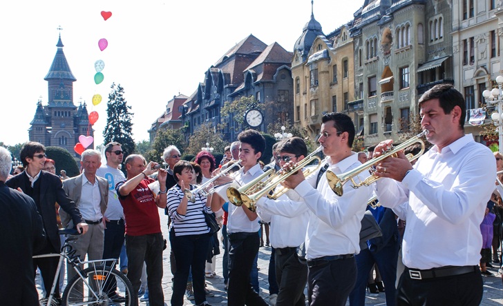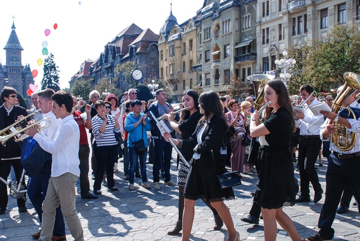 La orele 13.00, cand a fost programata parada din centrul Timisoarei, Piata Operei s-a colorat, iar instrumentele au adunat lumea ca la un semn. O multime de oameni aflati in zona s-au strans sa vada fanfarele care au oferit un spectacol de zile mari. Timisorenii i-au aplaudat pe instrumentisti si le-au facut fotografii.