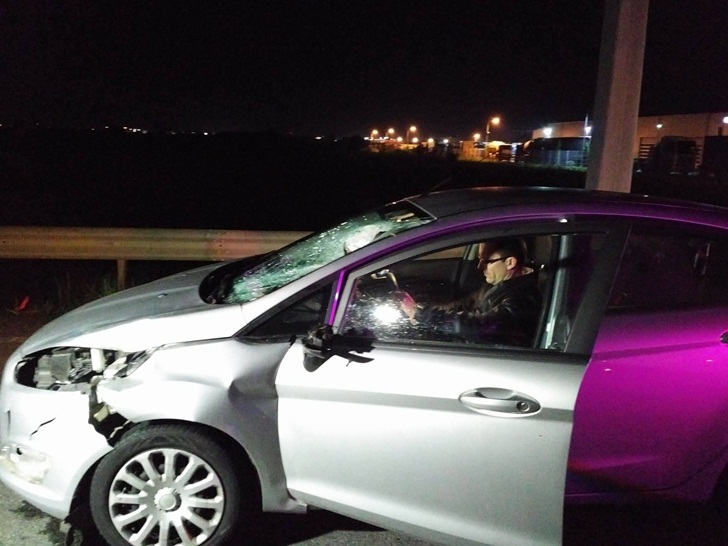Ingrozit, cand s-a trezit cu ea pe parbriz, barbatul a facut manevre disperate sa opreasca autoturismul.