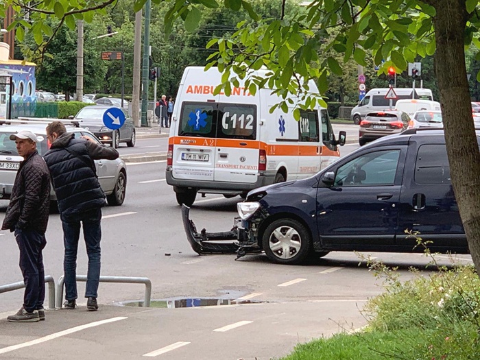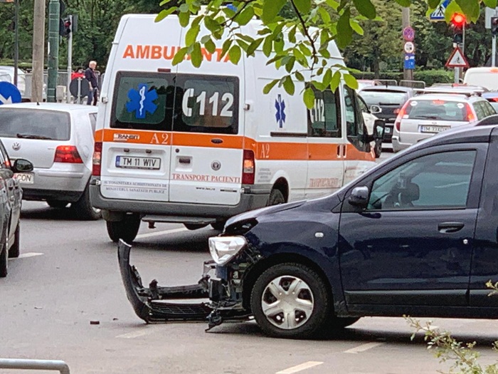 TIMISOARA. Accident neobisnuit, joi la pranz, in apropierea Spitalului Judetean din Timisoara.