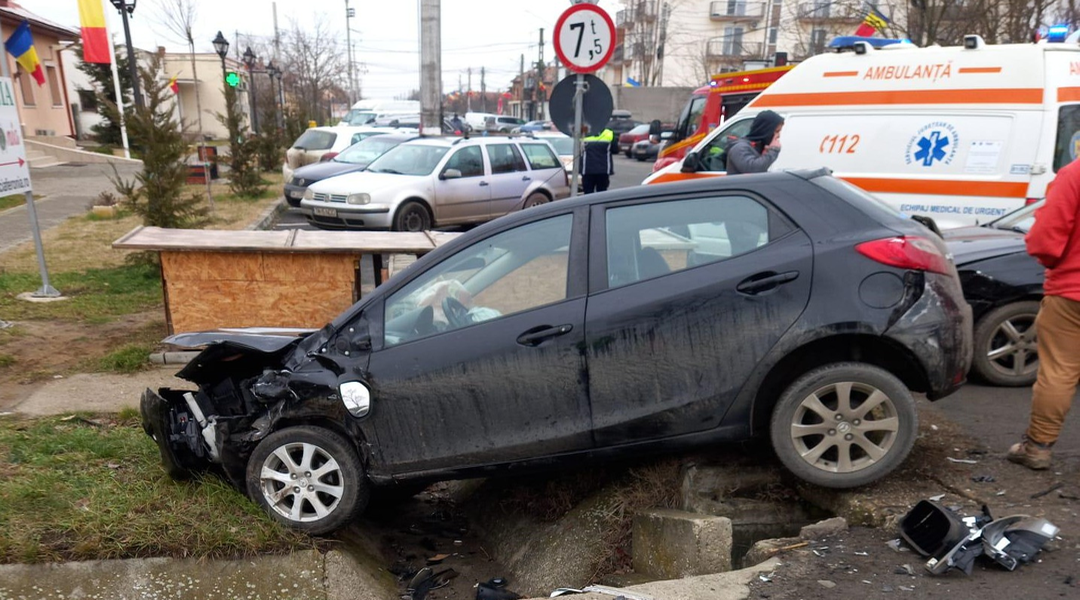 TIMIȘOARA. Oameni răniți și mașini avariate, după un accident într-o localitate de lângă Timișoara.