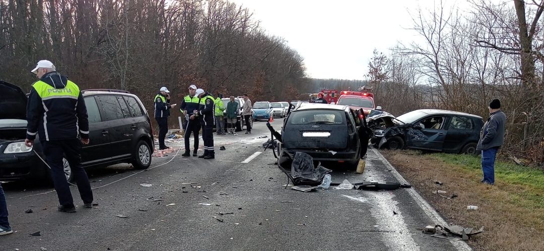 TIMISOARA. Grav accident de circulatie pe cea mai tranzitata sosea din vestul tarii, in Timis. 5 masini, in care erau 8 oameni, s-au izbit pe DN68 A, in apropiere de localitatea Traian Vuia.