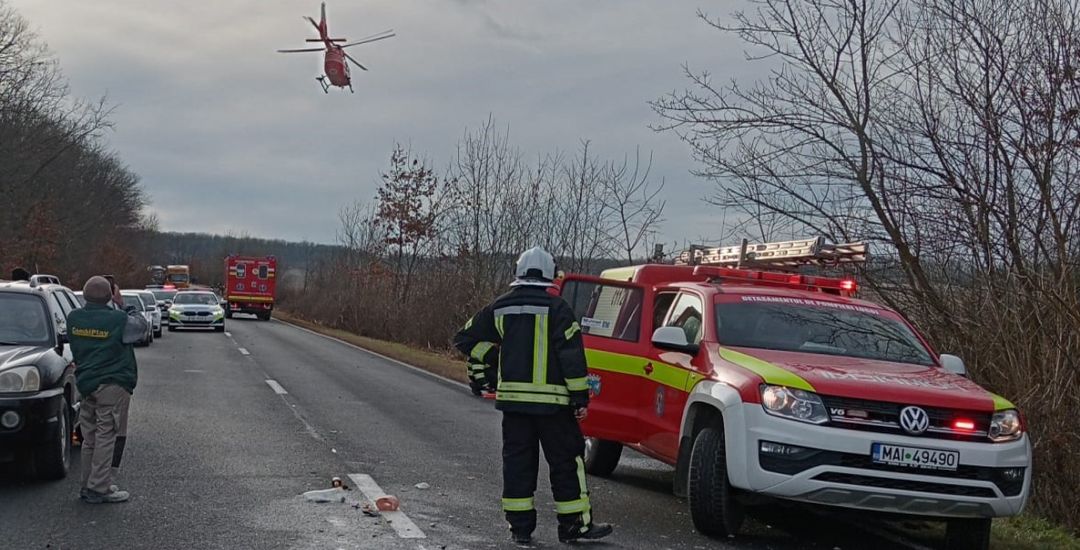 Mai multe echipaje de pompieri au intervenit la locul accidentului si a fost chemat in ajutor si elicopterul SMURD.