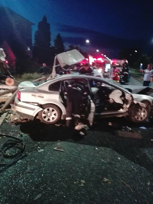 Accidentul a avut loc la ora 4.30 dimineata in apropierea comuna Topolovatu Mare. Soferul unui Volkswagen care tracta o rulota a pierdut controlul volanului si a patruns pe contrasens. Din directia opusa venea un alt autoturism care transporta lemne. Impactul a fost unul violent, soferul primei masini ramanand blocat intre fiarele autoturismului. Rani usoare au suferit alti doi pasageri aflati in Volkswagen, iar un copil de 12 ani a suferit un atac de panica. Soferul masinii care transporta lemne a fost si el grav ranit, intrucat in momentul impactului incarcatura a venit peste cabina masinii.