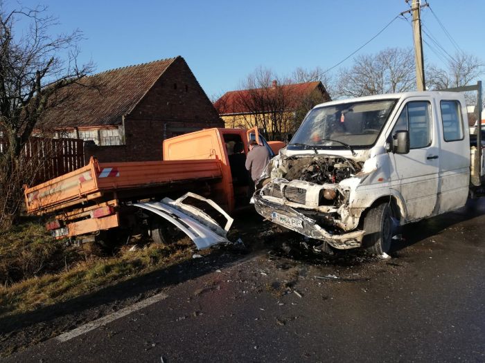 La iesirea din satul Gelu, spre Timisoara, doua autoutilitare in care se aflau 8 oameni s-au izbit frontal.