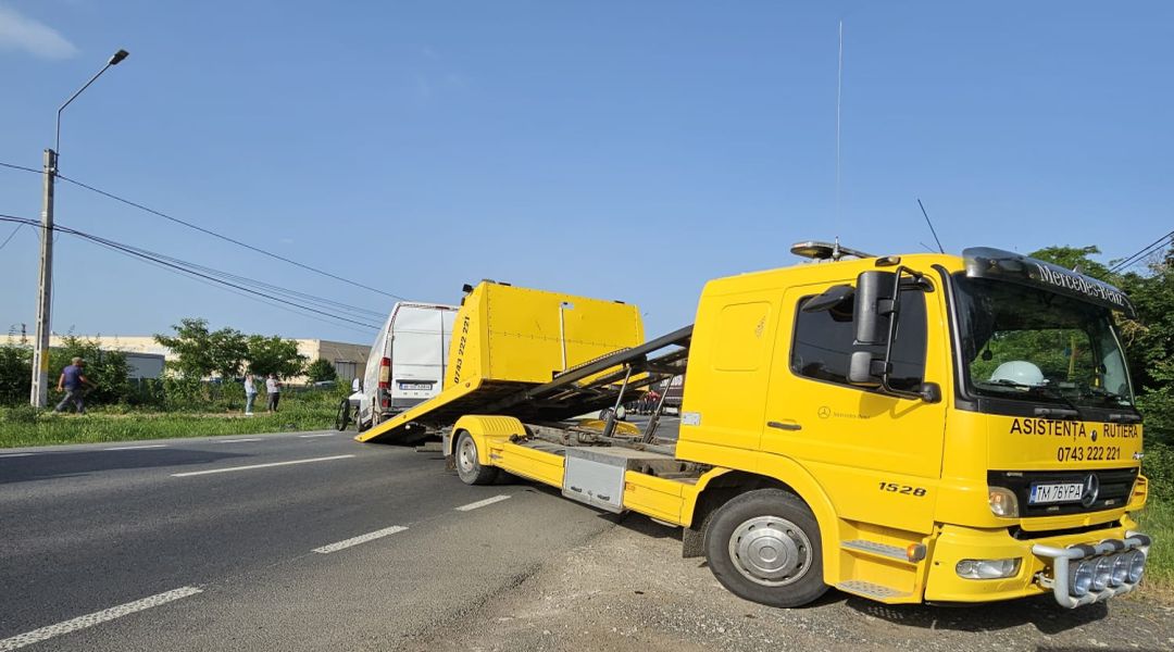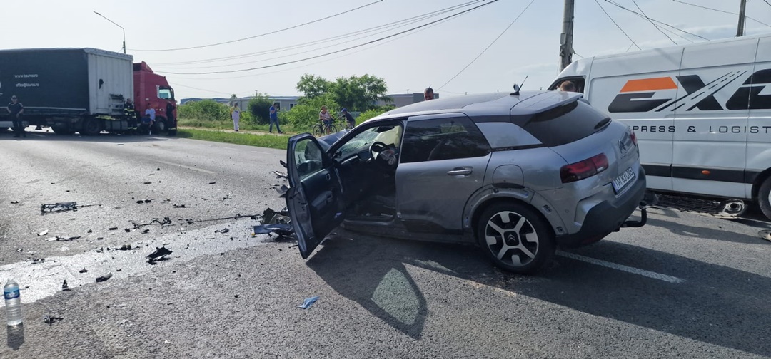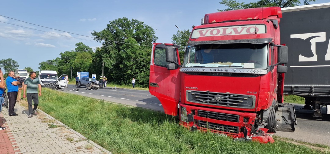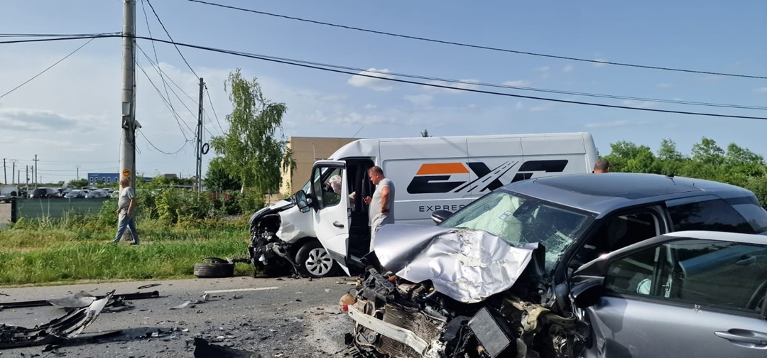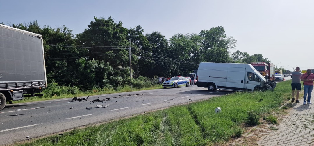 TIMISOARA. Accident de circulatie pe soseaua ce leaga Timisoara de Lugoj. Un tir, doua autoutilitare si un autoturism, in care se aflau 7 oameni, s-au izbit la Remetea Mare.