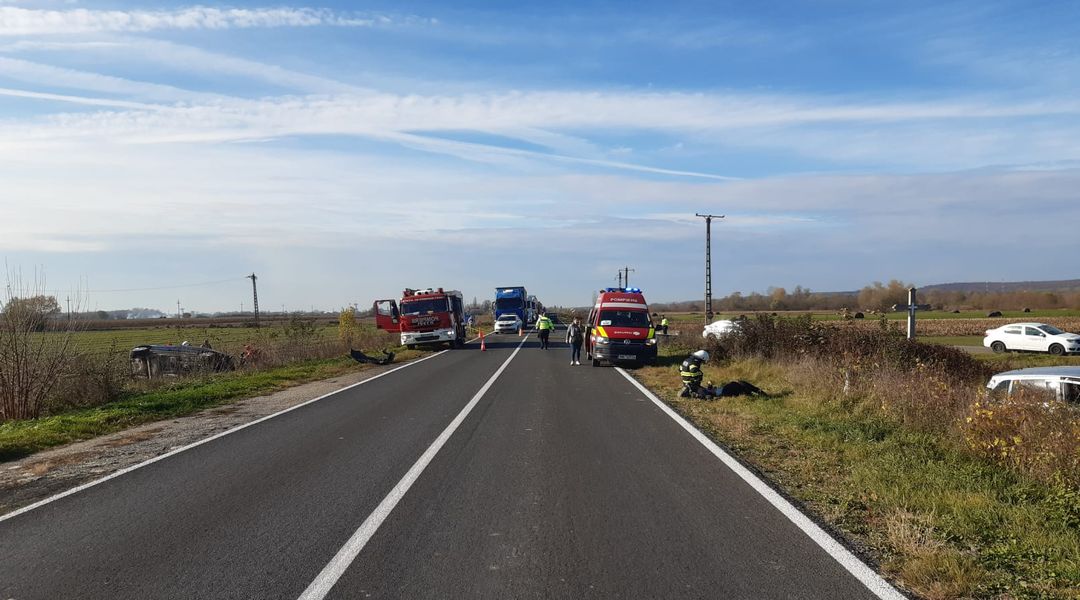 TIMISOARA. Grav accident de circulatie pe cea mai tranzitata sosea din vestul tarii, marti dimineata. Doua masini s-au izbit violent pe DN 68A, langa Faget.