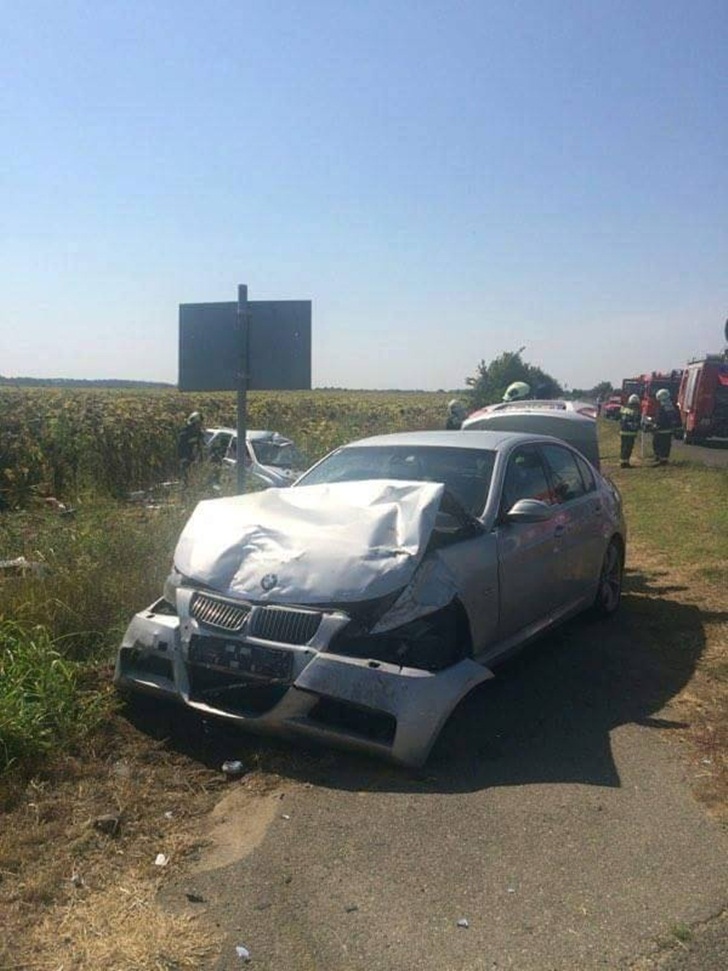 Doua masini s-au ciocnit in apropierea granitei, iar cei doi romani si un cetatean maghiar din cealalalt autoturism au suferit doar rani usoare.