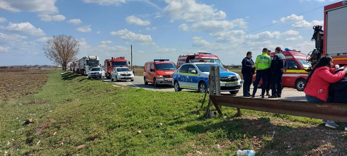 Pompierii au intervenit de urgenta cu o autospeciala de stingere, o autospeciala de descarcerare si 3 echipaje SMURD.