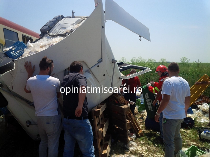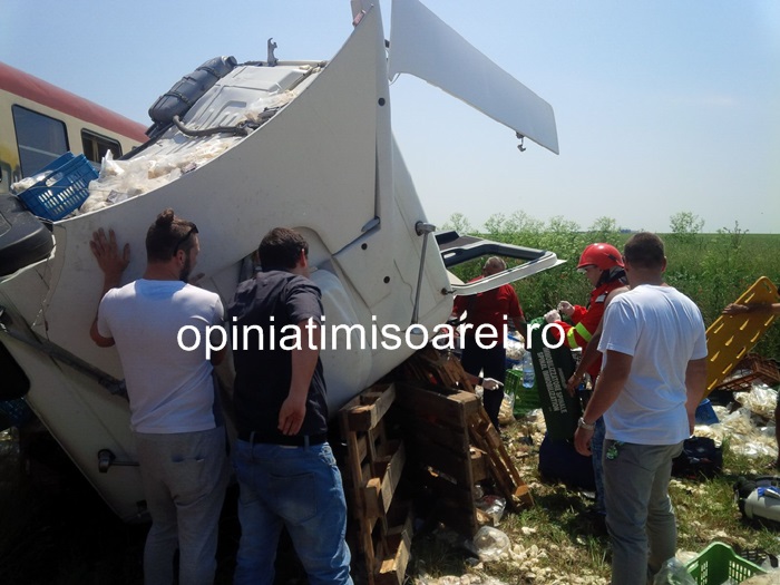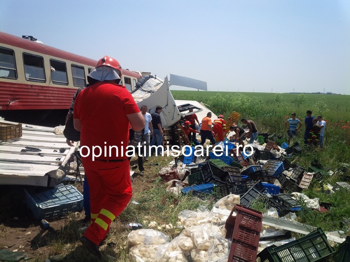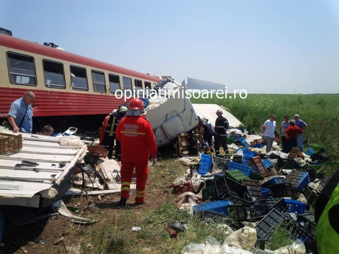 UPDATE 1: Trenul care a lovit TIR-ul este un automotor care circula pe ruta Periam – Timisoara. In garnitura se aflau aproximativ 20 de persoane.