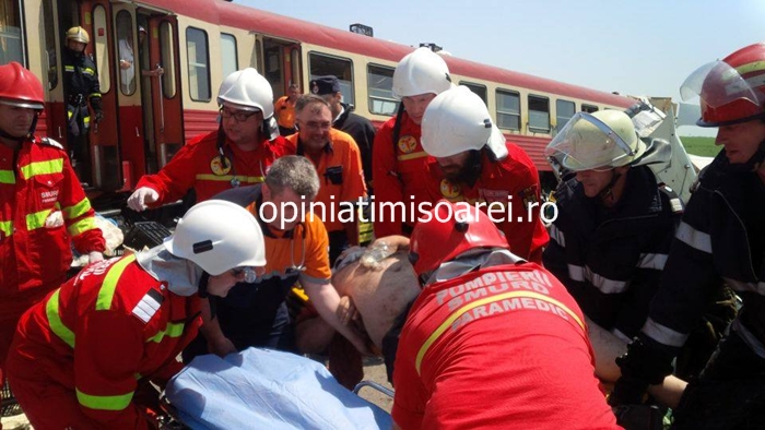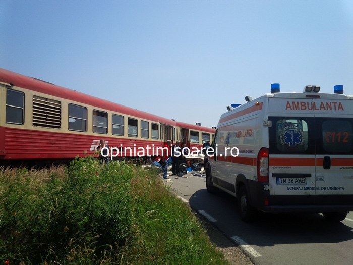 ”Un barbat de 35 ani, cetatean maghiar care conducea un autotren dinspre Hodoni spre Satchinez a traversat trecerea la nivel cu calea ferata simpla, fara bariere, prevazuta cu crucea Sfantului Andrei. A fost lovit de un automotor care se deplasa dinspre Sanandrei spre Hodoni. In urma accidentului 10 persoane au fost transportate la spital. Conducatorul TIR-ului, ranit grav, a fost transportat cu un elocopter SMURD la spital. Ceilalti 9 raniti sunt calatori. Trenul a deraiat si circulatia inca e blocata in zona”, a declarat pentru opiniatimisoarei.ro Ancuta Morariu, purtatorul de cuvant al IPJ Timis.