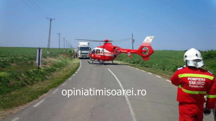Soferul tirului a fost transportat de urgenta la Spitalul Judetean Timisoara, cu elicopterul SMURD.